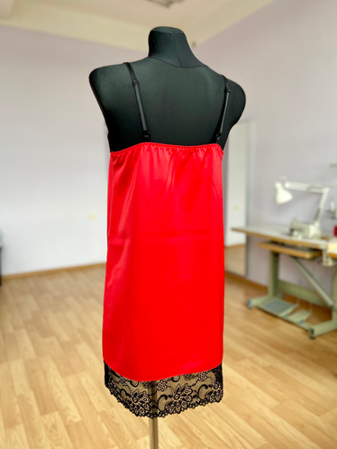 Pidžamas ir izgatavotas no augstas kvalitātes poliestera satīna auduma, kas ir grezns, gluds un zīdains, ar viegli matētu spīdumu labajā pusē. Šis audums izceļas ar patīkami mīkstu tekstūru, viegli krītošu formu, praktisku kopšanu un neburzīšanos. Gan krekliņš, gan šorti ir papildināti ar smalkām mežģīnēm, kas piešķir sievišķīgu akcentu. Šortiem ir elastīgs viduklis, kas nodrošina ērtu un patīkamu piegulumu. Krekliņam ir regulējamas plecu lences, lai nodrošinātu individuāli pielāgojamu komfortu.